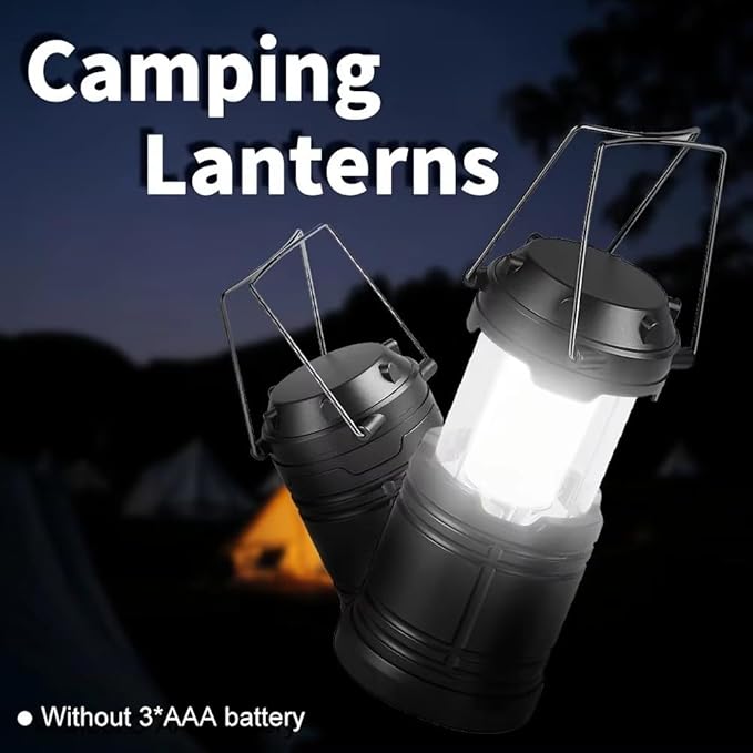 Lantern Camping Essentials Lights, Led Flashlight for Power Outages, Tent Lights for Emergency, Survival Gear and Supplies for Hurricane, Battery Operated Lamp, 2 Pack, Black