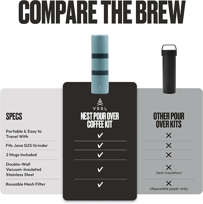 • Built to Last a Lifetime - VSSL Products are built to adventure as hard as you do. Covered by our Geared For Life warranty, our travel pour over coffee kit is protected against manufacturer defects for life.