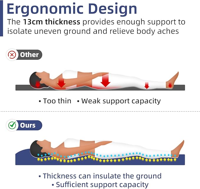 • 【Durable, Weather-resistant Nylon&TPU】Sleeping mat built with tear-resistant nylon and seam-sealed TPU, this mat durable, moisture, and UV exposure. Perfect for hikes, backpacking, tent camping, car travel, picnic, guest use, lunch break, courtyard rest etc. Let adventure not be limited by weather and location.Don't be afraid of hiking in rainy days. If it gets wet, you can wipe it with a dry cloth, and if it gets dirty, wipe it with a wet towel.