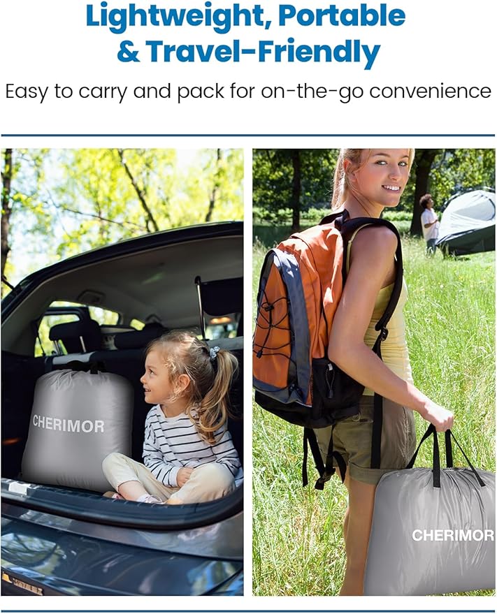 • 2-Min Quick Inflation & Deflation: Set up your blow up mattress in just 2 minutes with our built-in 120V electric pump. The mattress inflates quickly through a single valve, achieving full firmness faster than brewing your morning coffee! The mattress measures 80×39×18 inches, and packs away neatly in the included backpack for easy storage and transport