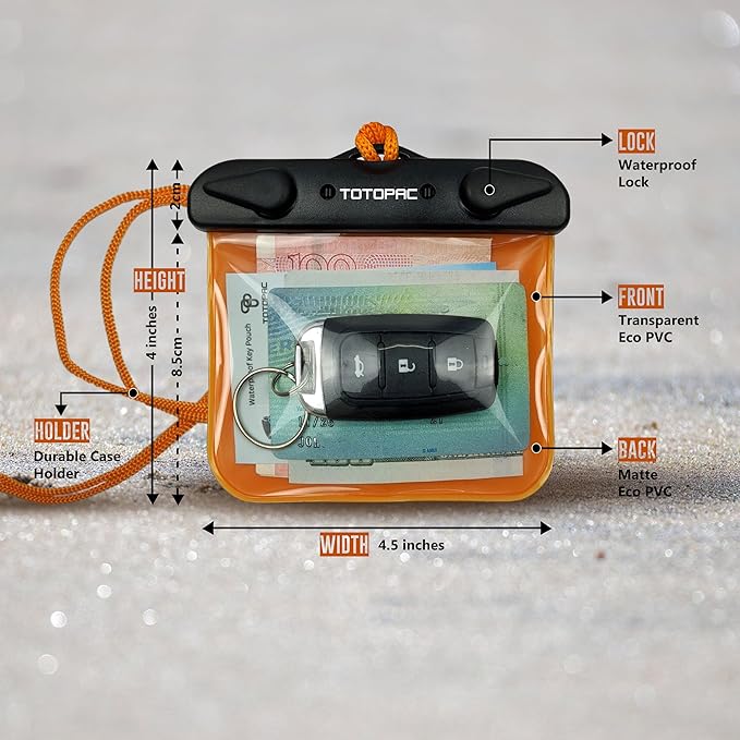 2Pack Waterproof Car Key FOB Case Floating Wallet Pouch for Remote Keys ID Credit Card Cash Money Submersible Dry Bag Holder (2, Orange + Orange)