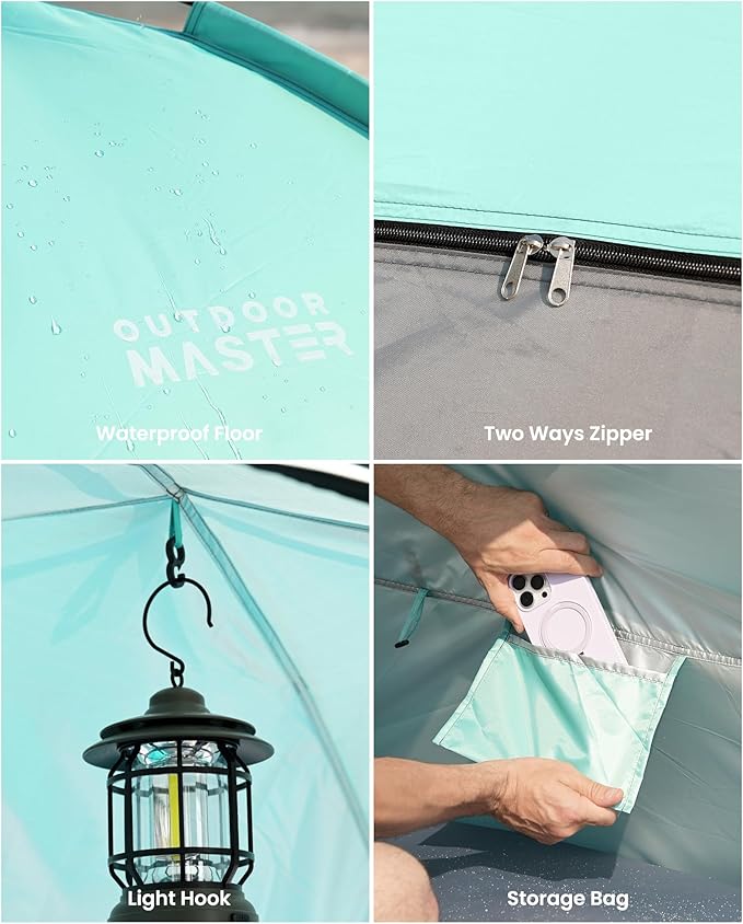 • Versatile & Thoughtful Design: Features a convenient zippered door for quick privacy when changing clothes. The extended front floor creates bonus space - perfect for gear storage, kids' play area, or relaxing in the shade