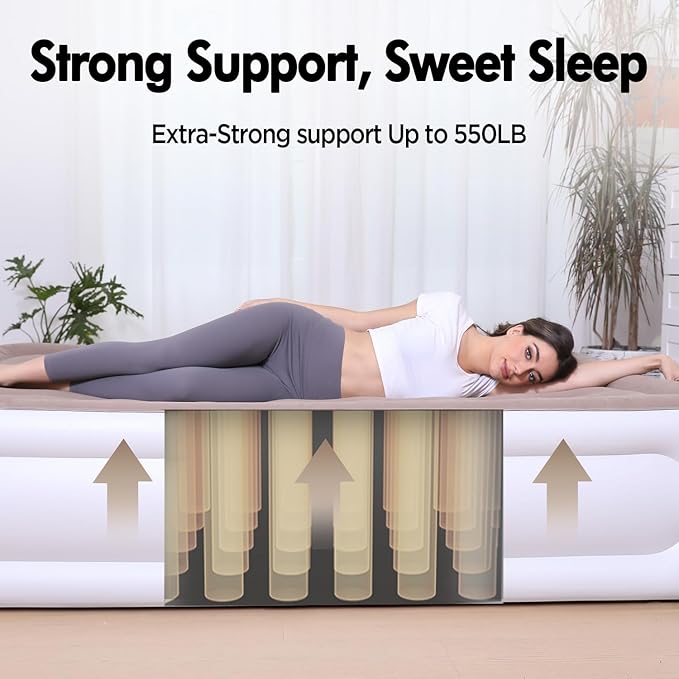 • Raised 18" Height for Real Bed Comfort Standing 18 inches tall, the Etto blow-up mattress makes getting in and out of bed effortless — no more struggling with low, sagging airbeds. It delivers the elevated comfort of a real bed, perfect for adults and overnight guests, whether at home or on the go