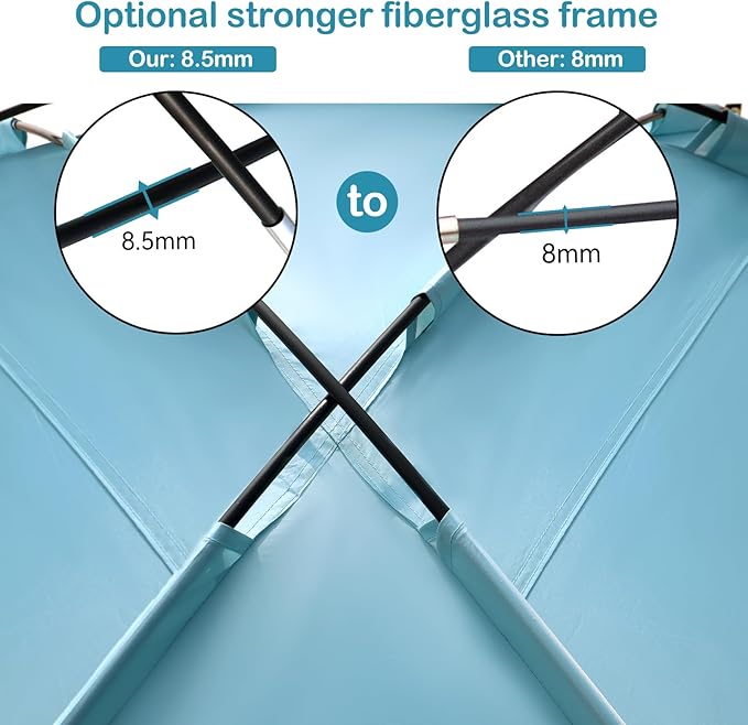 • Strong Construction and Reliable Protection: Equipped with 3 sturdy fiberglass poles that provide excellent support and stability, ensuring that the tent remains stable even in windy weather. Equipped with 4 wind ropes and 8 sturdy ground pegs, the tent can be securely fastened to the sand or soil, providing reliable protection from the wind and keeping you safe and comfortable when you are outdoors.