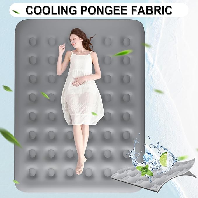 • 【Ultra-Soft】Enjoy comfort with our newly upgraded queen air bed, featuring extra-plush pongee fabric—softer, smoother, and more skin-friendly than standard blow-up mattresses. Perfect for deep, pain-free sleep!