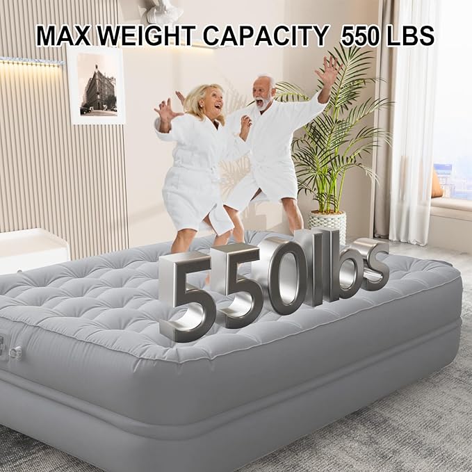 • 【Waterproof & Leakproof】Our inflatable mattress queen features triple-layered seams + industrial-grade PVC to ensure less leaks and 100% waterproofing—no more waking up on a deflated blow-up mattress! Great for camping, guests, or daily use.