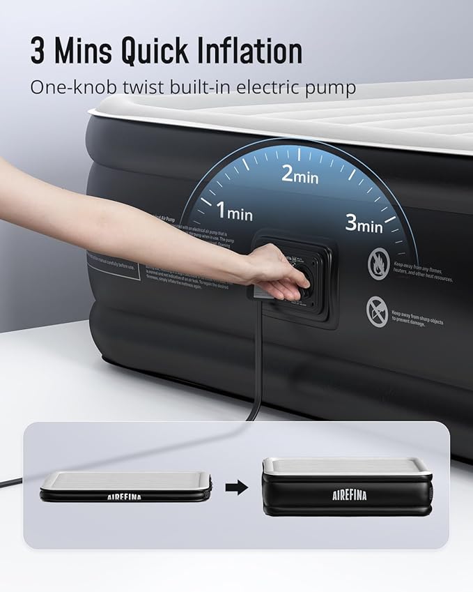 Airefina Air Mattress Queen with Built in Pump, 18 Raised Blow Up Mattress Upgraded Comfort Inflatable Mattress for Guest Home, with Portable Carrying Bag Air Bed Queen Size, Colchones Inflables