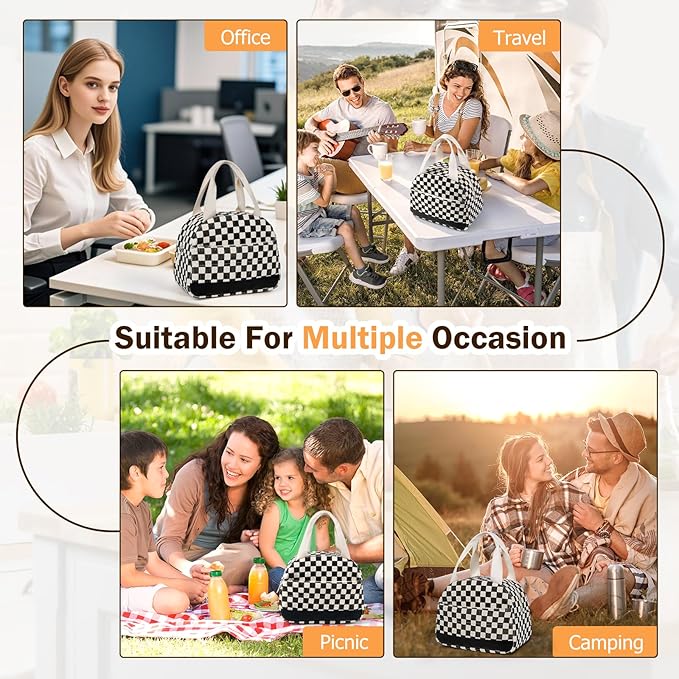 Lunch Box Lunch Bag for Women Men, Leakproof, Insulated Lunch Box Tote with Large Capacity, Lunch Container for Work/Office (Corduroy Black Checkered Pattern)