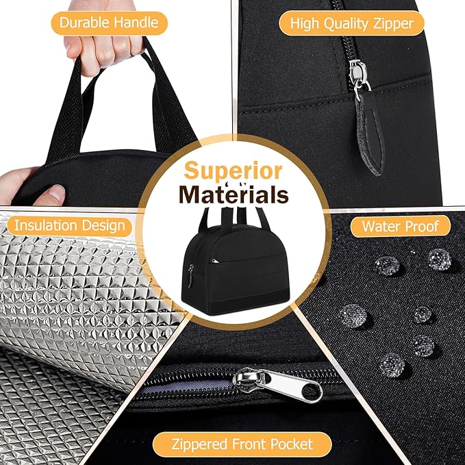 • 【Black Insulation Lunch Bag】This women's lunch bag is made with durable aluminum foil insulation, designed to keep your food warm for 4-6 hours and fresh for up to 9 hours. It's easy to clean and convenient to carry, making it both practical and reliable for everyday use.