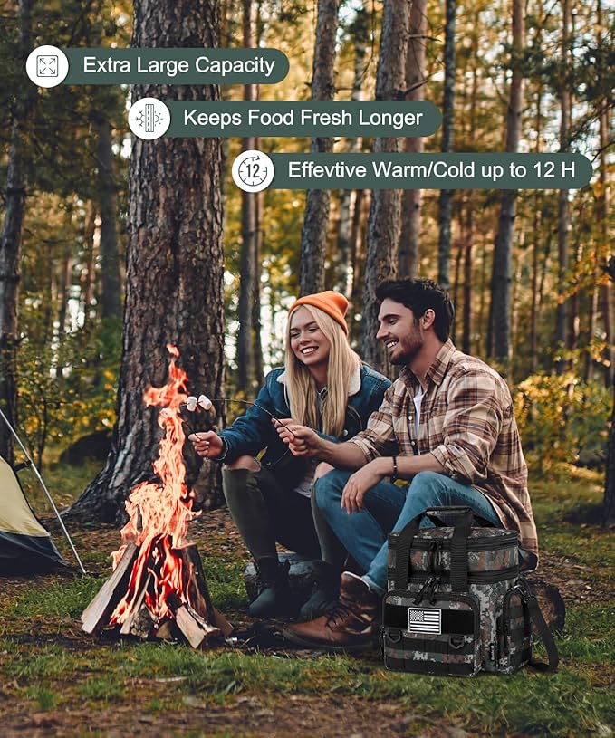 Tactical Lunch Box for Men, Expandable Large Insulated Lunch Bag for Adult, Heavy Duty Double Deck Lunch Cooler Bag with Shoulder Strap Leakproof Waterproof Lunch Tote for Travel Office - Green Camo