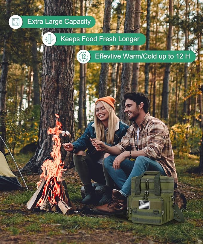 Tactical Lunch Box for Men, Expandable Large Insulated Lunch Bag for Adult, Heavy Duty Double Deck Lunch Cooler Bag with Shoulder Strap Leakproof Waterproof Lunch Tote for Travel Work Office - Green
