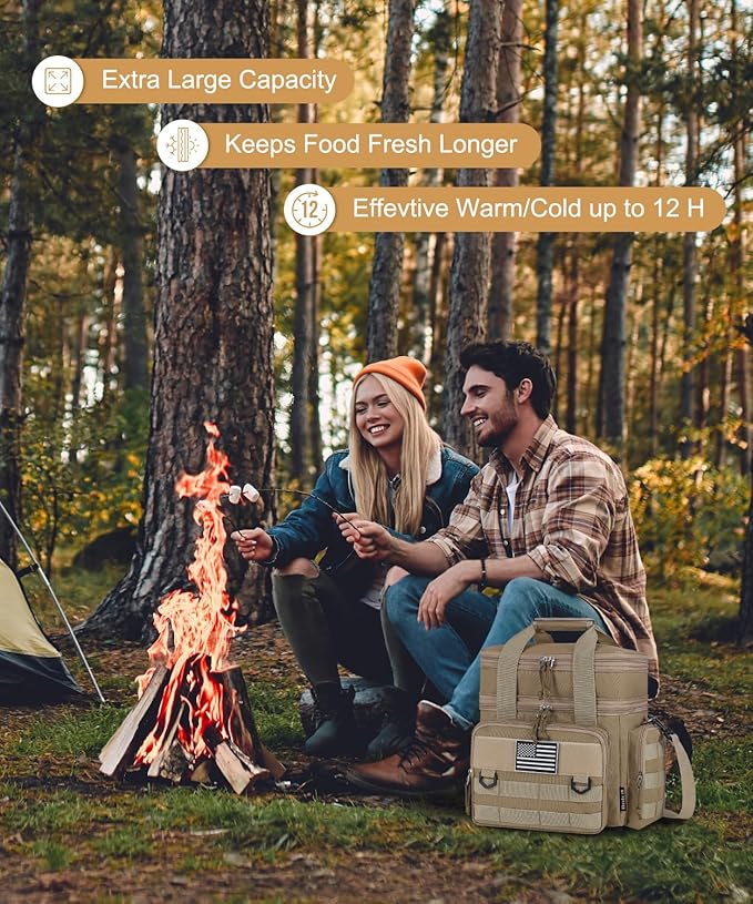 Tactical Lunch Box for Men, Expandable Large Insulated Lunch Bag for Adult, Heavy Duty Double Deck Lunch Cooler Bag with Shoulder Strap Leakproof Waterproof Lunch Tote for Travel Work Office - Sandy