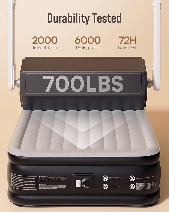 • Customize Your Sleep: Our queen size air mattress with built in pump allow you adjustable inflatable air mattresses firmness by simply adding or releasing air. Level based on your personal preference.
