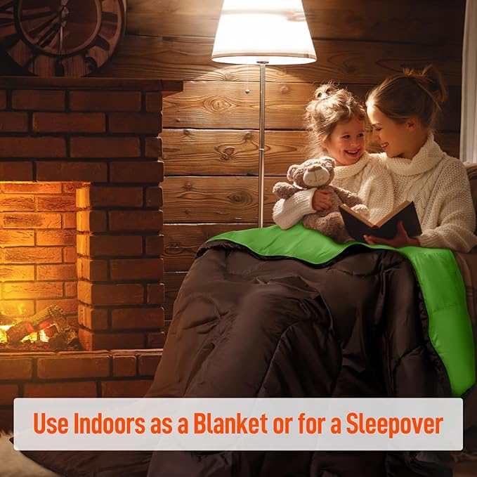 • GOOD FOR COLD WEATHER : The rating you choose will depend on where you’ll be using it and what temperature you are comfortable sleeping in. For a comfortable night’s sleep consider the lowest outdoor temperature you’ll be sleeping in and ensure that temperature falls within the comfort range. The ‘extreme’ temperature rating is essentially ‘the survival temperature’. It is not the lowest temperature you will be comfortable in and we do not recommend using 2 person sleeping bag at this Temp