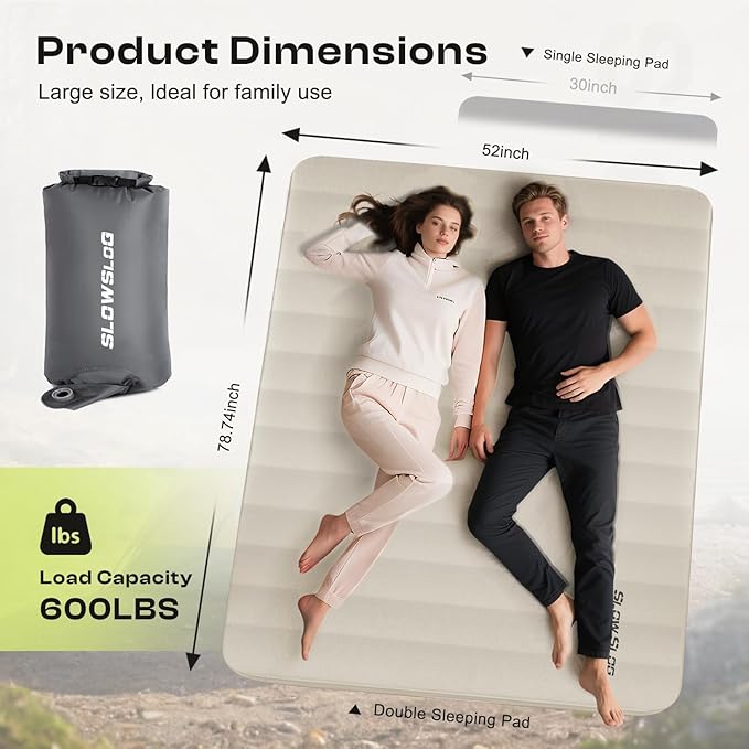 • Superior Comfort: This double sleeping pad features 4-inch thickness and supports up to 660 lbs, delivering unmatched comfort for side sleepers and campers. The advanced air-foam hybrid design evenly distributes weight while preventing bottoming-out, ensuring pressure-free rest