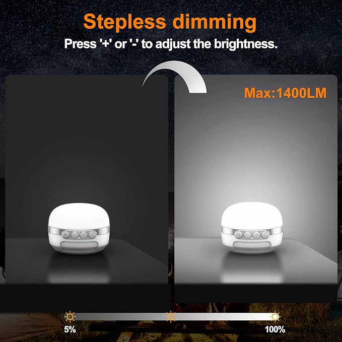 • A 10400mAh Power Bank: Last up to 420 hours after a full charge (at the lowest brightness ) , equiped with a 10400mAh battery, this camping light will charge your phone during your camping/hiking. It's also a nice choice to place it in your bedroom in case of hurricanes or power outages.