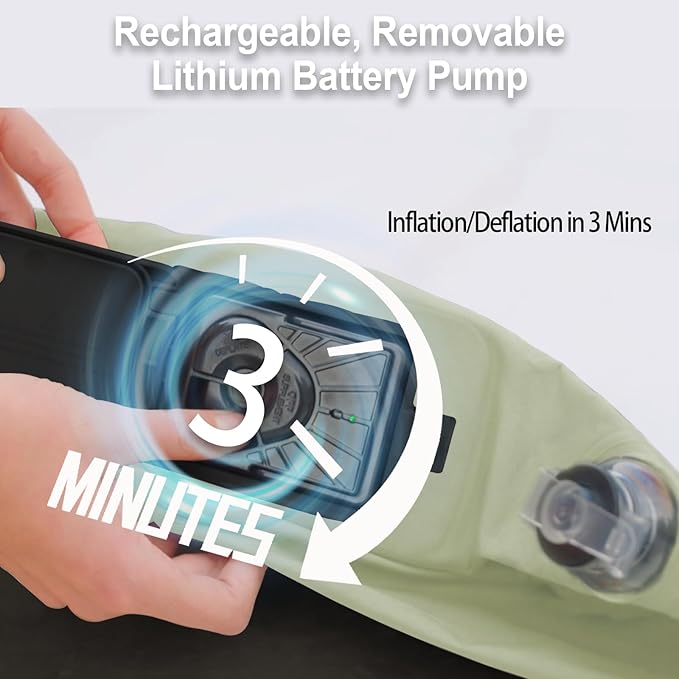 • 【WIRELESS & RAPID 3-MIN INFLATION】 Enjoy unparalleled convenience with the built-in rechargeable pump (Type-C cable included). Achieve cord-free inflation in just 3 minutes—no electrical outlets needed. This feature is ideal for last-minute guests and outdoor adventures where power sources are limited, setting it apart from flimsy inflatable beds with manual pumps.