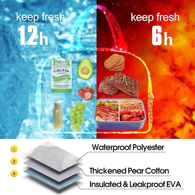 • MULTIFUNCTIONAL DESIGN: Daily lunch bag, grocery bag, cooler bag, shopping bag, picnic bag and cosmetic bag, suitable for kids, adults, students, office workers, men and women. Stylish lunch box suitable for various occasions including school, office, work, travel, picnic, outdoor beach and at the outside.