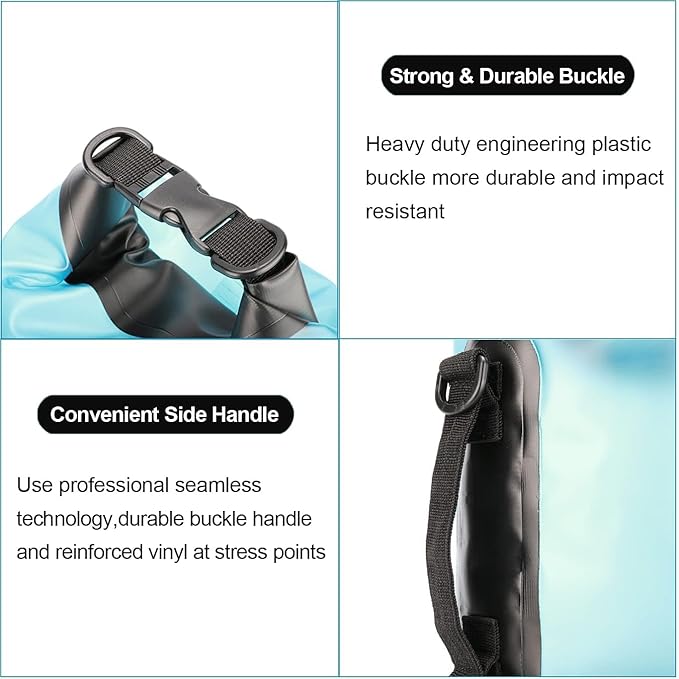 • VERSATILE AND DURABLE: Equipped with adjustable and retractable straps,so that the waterproof bag can be carried not only by hand but also on one shoulder without burdening your arms or shoulders.The buckle and D-rings are upgraded with POM material,stronger than other traditional buckle.