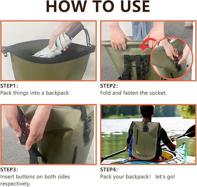 • 【Waterproof & Durable Construction】Crafted with premium leather-like material, this dry bag backpack delivers exceptional waterproof performance to protect essentials during hiking adventures.