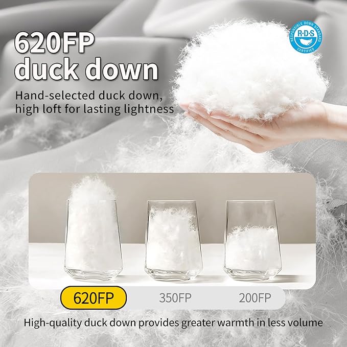 • Warm & Cozy: 3 season sleeping bag. Filled with 1.76 lbs of RDS-certified 620FP down. Comfort temp: 41-26°F, limit temp: 17°F. Ideal for hikers & campers.