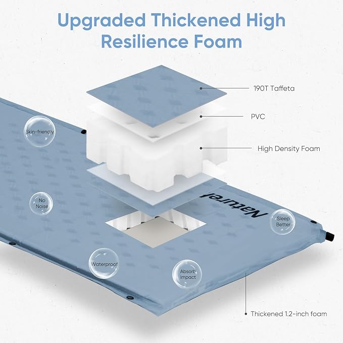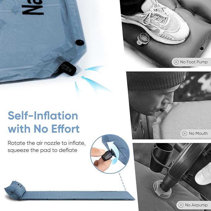 Naturehike Self-Inflating Sleeping Pad, Ultralight Memory Foam Camping Pad with Pillow, Fast Inflating, Sleeping Pad for Camping Hiking with Storage Bag, Single, Blue