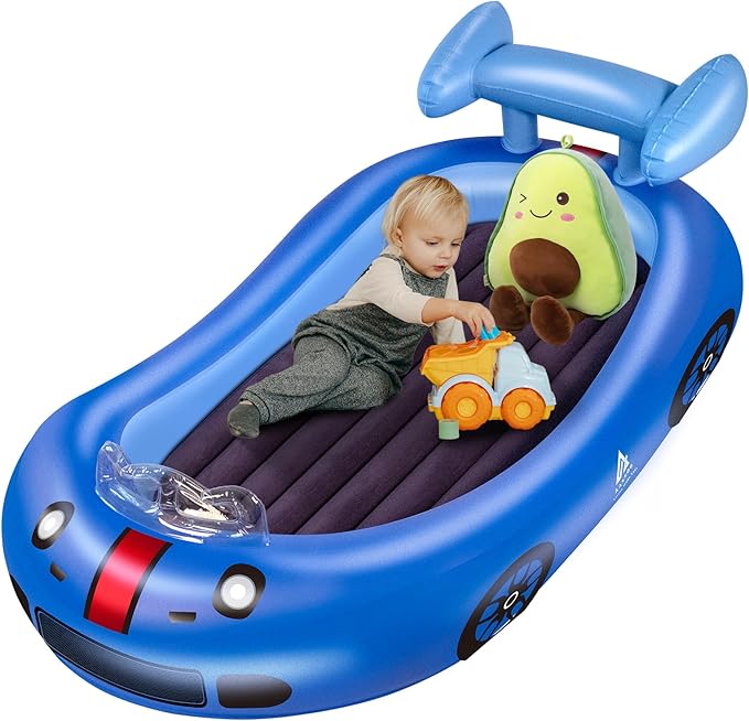 • Cool Racing Car Design with Bonus Avocado Pillow – Make bedtime exciting! This inflatable kids’ travel bed features a vibrant racecar design, allowing little ones to feel like they're sleeping in their own mini sports car. Paired with an adorable avocado hugging pillow, it adds extra comfort and fun, making it the perfect gift for 3-6-year-old car lovers.