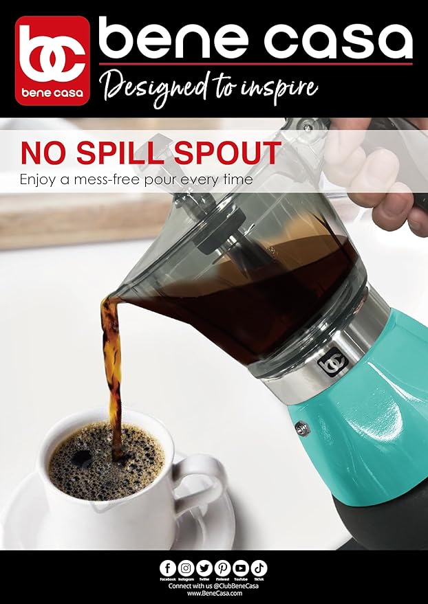 Bene Casa Teal Portable Electric Espresso Maker/Cafetera, 1-3 Cups/Shots (1, TEAL)