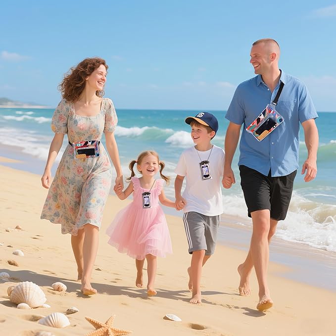 • AMPLE CAPACITY: measuring 7 inches x 8.5 inches, it can hold large smartphones, wallets, passports, keys, cash, and other personal belongings that need to be stored, rainproof, snowproof, dustproof, sandproof, making your beach trip more peaceful and enjoyable.