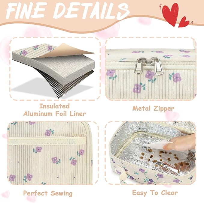 • Wide open zipper for the kids lunch bag make it easier for the little one to manage mealtime on their own; Made of durable waterproof corduroy fabric, quality zippers and thick aluminum inner (BPA free) to ensure your little one's lunch does not get crushed; Easy-wipe interior make cleanup a breeze.