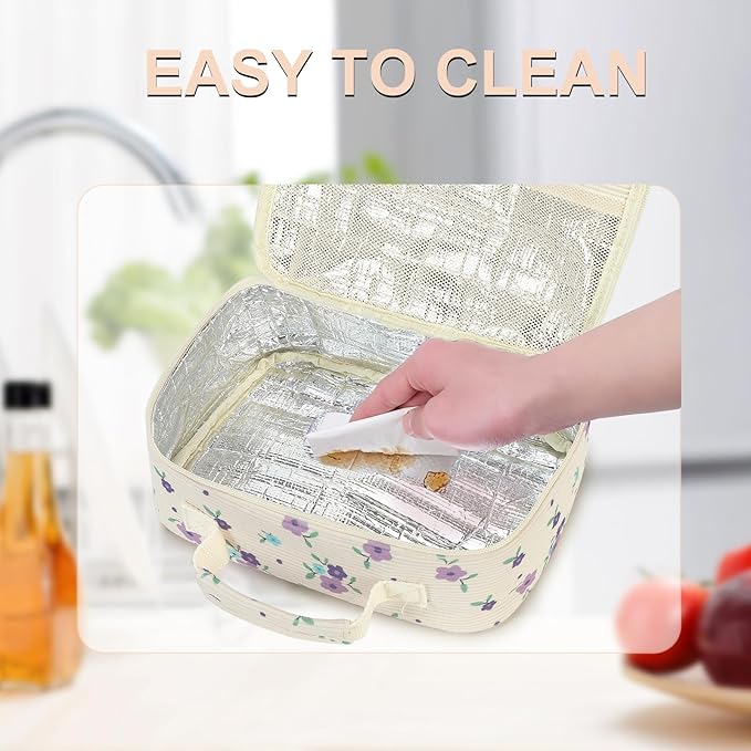 • Well designed insulated lunch box for carrying food, snacks, lunch to school, office, work, and on the go. This durable reusable lunch box cooler is uniquely built to meet all your daily lunch, meal prep, or snacking need. Kepping your food fresh at optimal temperature so you can always recharge with the warm tasty food and cool drinks.