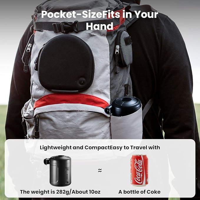 • Ultra-Portable & Wireless Handheld Design: Enjoy ultimate freedom with this compact, lightweight portable inflator air pump. Its ergonomic, handheld design easily clips to backpacks or fits in pockets for effortless transport. Simple one-button operation makes it perfect for beach trips, camping, hiking, or quick home storage (Note: Long press to activate). The essential portable air pump for spontaneous adventures