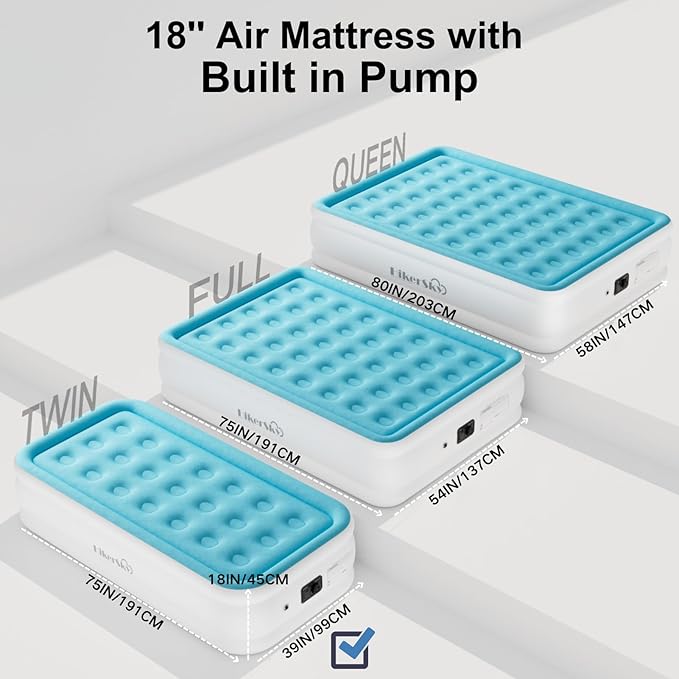 • IMPORTANT NOTE: Twin air mattress with built-in pumps will usually expand and stretch naturally after the first few inflations, making it look like there is a leak - this is normal. Simply re-inflate the bed for a while and the air bed will return to its original shape!