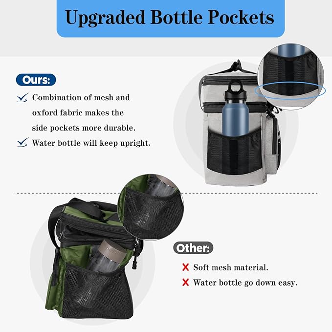 • Durable and Heavy-duty Design: Adopted 6mm thicker outer oxford fabric with strong stitching which makes the cooler bag tough to withstand daily use and outdoor adventures without showing signs of wear and tear. Design with a reinforced structure, the lunch bag is enough to stand up on its own when empty. This insulated lunch bag is suitable for drivers, construction workers, or camp counselors.