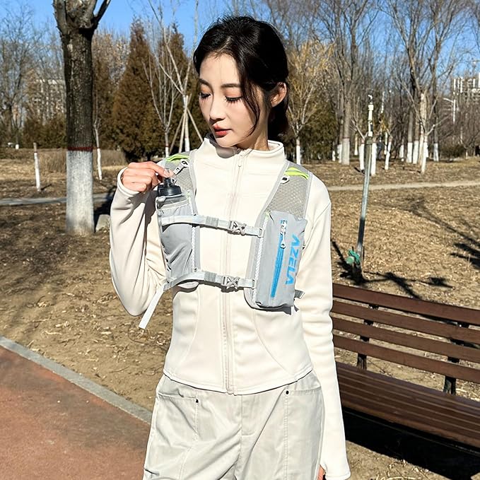 • Durable & Safe: Made with water-resistant nylon, premium zippers, and secure fasteners, this hydration backpack offers lasting durability. Reflective strips and a safety whistle enhance visibility and safety during morning/night runs and trails