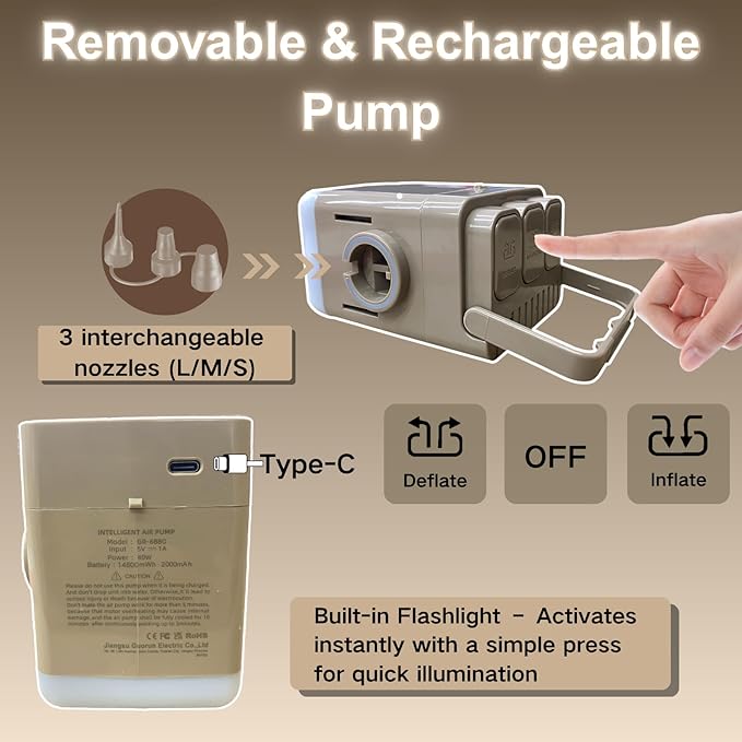 • 【3-Min Fast Inflation & Ultra Portable with Built-in Pump】 Set up in minutes, anywhere! The integrated built-in lithium battery pump inflates/deflates this camping mattress in under 3 minutes. Works with car USB ports and portable chargers. Includes a storage bag—folds 80% smaller for easy transport in your car trunk or closet.