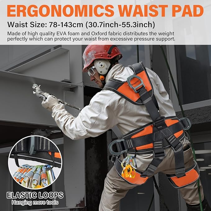 • Detachable Design Two Mode:Engineered for professional climbers and adventurers, this detachable full-body climbing harness combines military-grade nylon webbing with reinforced stitching to withstand extreme loads (tested up to 5000 lbs). Rock half body harness mode also extraly fit for climbing. Waist size: 78-143cm(30.7inch-55.3inch) Leg size: 54-97cm(21.2inch-38inch), fit weigh 130-350 pounds (59 to 159 kg)