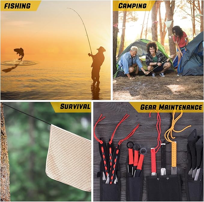 • Versatile Applications for Every Adventure: This 1000 lb paracord is perfect for securing tents, hammocks, and creating DIY accessories like bracelets, lanyards, jig, keychain, wrapping axes, shoe laces, handle for water bottle and other paracord accessories. The inner core serves not only as a supporting element but also functions as a standalone line, offering an alternative to Micro Cord. Whether indoors or outdoors, it's your go-to rope for camping adventure