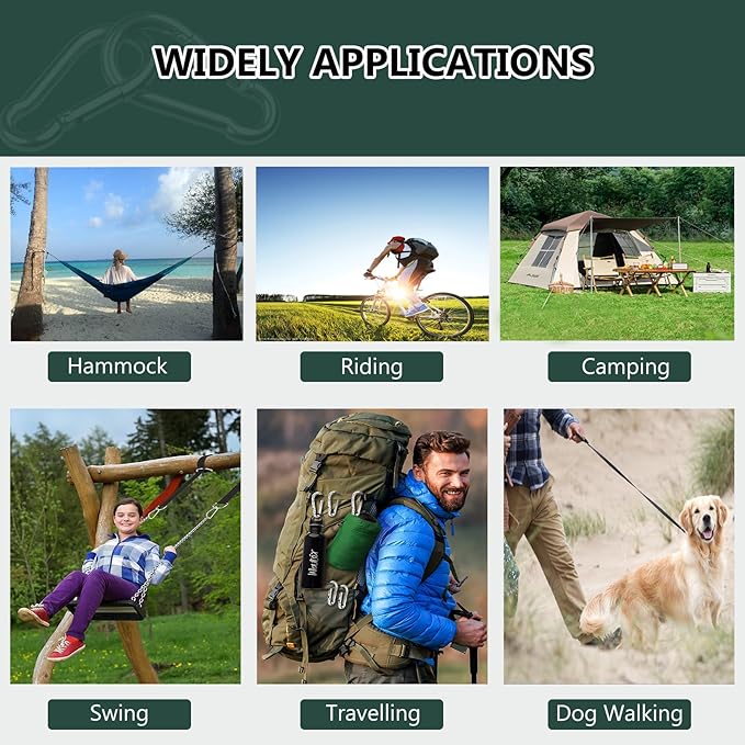 • Versatile Carabiner Clip: Perfect for hammocks, camping, fitness gear & outdoor use. Also great for keys, dog leashes, fishing gear & more—ideal multi-purpose fastener