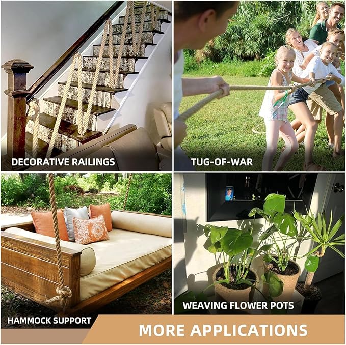 • 【Indoor and Outdoor Use】Widely used for DIY crafts, cat scratching post, carpets, bed swing, deck railing, it can also be used for Protecting stair handrail, water pipe, balcony guardrail.