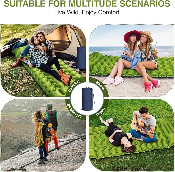• Only 30s Built-in Foot Pump Inflation: The camping mat has a built-in pump and takes only 30-60 seconds to fully inflate with a simple step or press. Quickly deflates in just 1 second. Self inflating sleeping pad is convenient and easy to use, no need to inflate with your mouth, hands or carry a pump. Upgraded air valve design, no need to worry about air leaking!