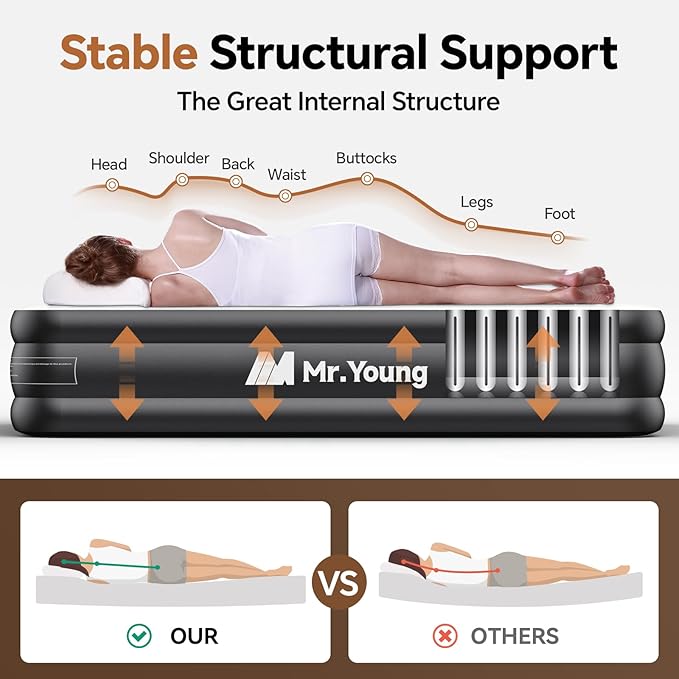 Mr.Young Air Mattress Twin with Built in Pump, Luxury Blow up Mattress, Colchones Inflables in 2 Mins Self-Inflation/Deflation, Inflatable Mattress for Guests and Home, Camping, 650lb MAX