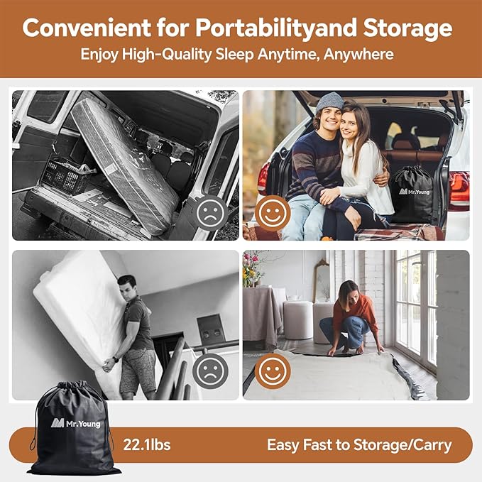 • 😍【Foldable and Portable】The twin air mattress adopts a foldable portable design and comes with a travel bag for easy transportation and storage. Inflatable mattress space-saving design means you can take your comfy bed anywhere! Blow up mattress can be stored in a storage bag when not in use for easy storage.