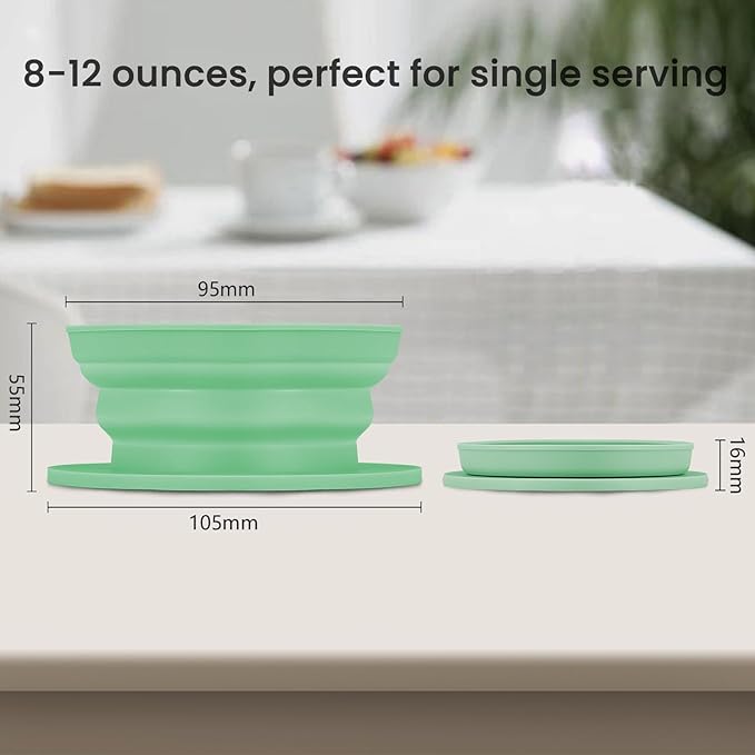 Travel Electric Kettle, Collpasible Portable Electric Kettle, Portable Tea Kettle + Paperless Travel Pour Over Coffee Maker, Collapsible Pour Over Coffee Dripper One Cup (Green)