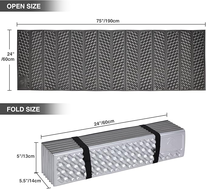 • Rugged Construction for Long-Term Use Featuring precision-cut edges to prevent fraying and dense foam base for ground protection, this pad resists punctures from rocks or twigs. The easy-to-clean surface repels dirt, and the compact storage strap ensures hassle-free packing—trusted by backpackers for its balance of comfort and trail-ready durability.