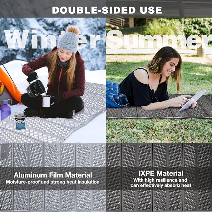 • Adaptive Thermal Performance Optimized for -5°C to 35°C (23°F to 95°F), the reflective heat-trapping layer enhances warmth retention in chilly conditions, while ventilation grooves reduce heat buildup in summer. UV-resistant materials prevent degradation during sun exposure, outperforming standard pads in multi-season versatility.