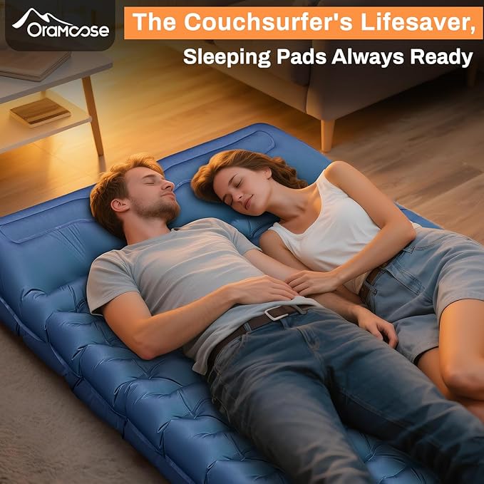• 1 second putting together, free assembly: Can't get enough inflatable bed for multiple travelers? The snap button design on our Inflatable camping mattress allows you to splice multiple sleeping mats in 1 second, suitable for solo sleeping, double or multi-person family camping, say goodbye to the embarrassment of separation; color blocking and solid color dual choice, suitable for a variety of camping styles.