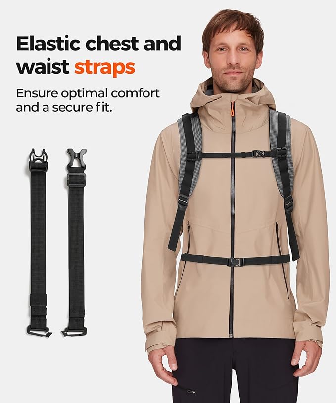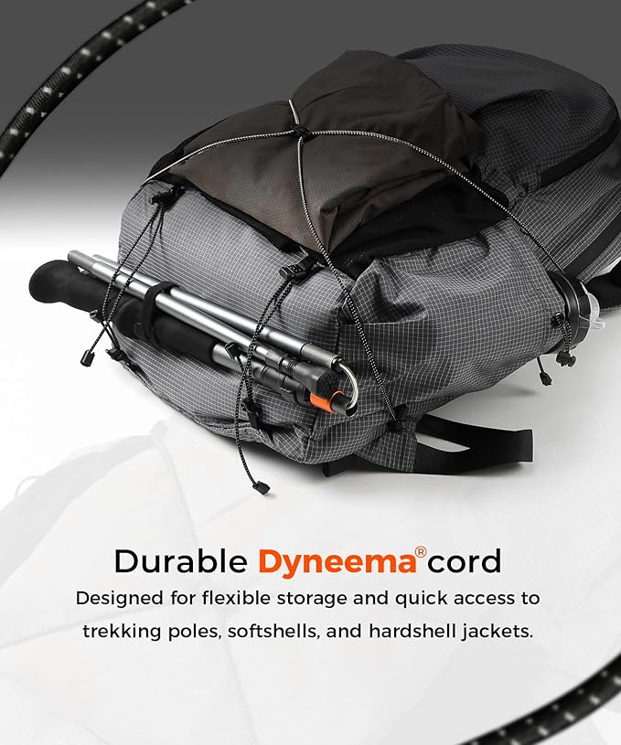 • Unique Functional Design: The backpack is equipped with elastic straps and buckles to accommodate trekking poles or adjust the webbing as needed. The luminous rope wrapped around the outside of the backpack makes you safer at night.