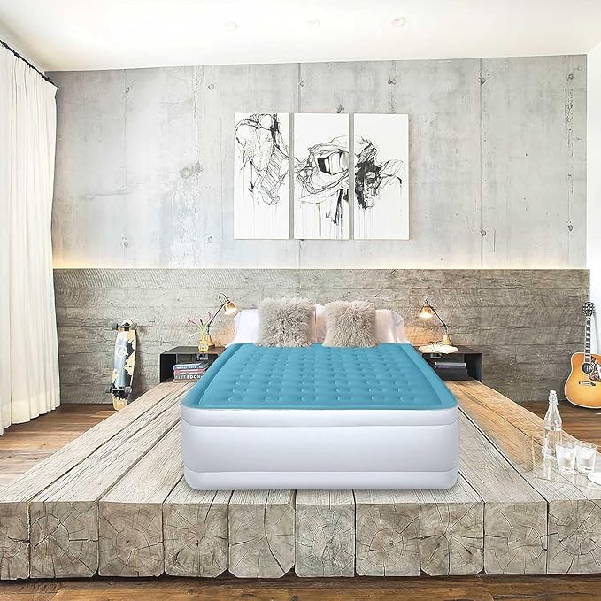 YENING Full Size Air Mattress with Built in Pump Raised Double Blow up Bed Inflatable Camping Airbed Electric 18 Inch Tall Blue