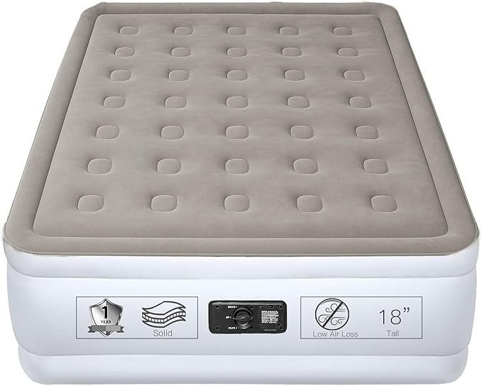 YENING Full Size Air Mattress with Built in Pump Raised Double Blow up Bed Inflatable Camping Airbed Electric 18 Inch Tall Grey